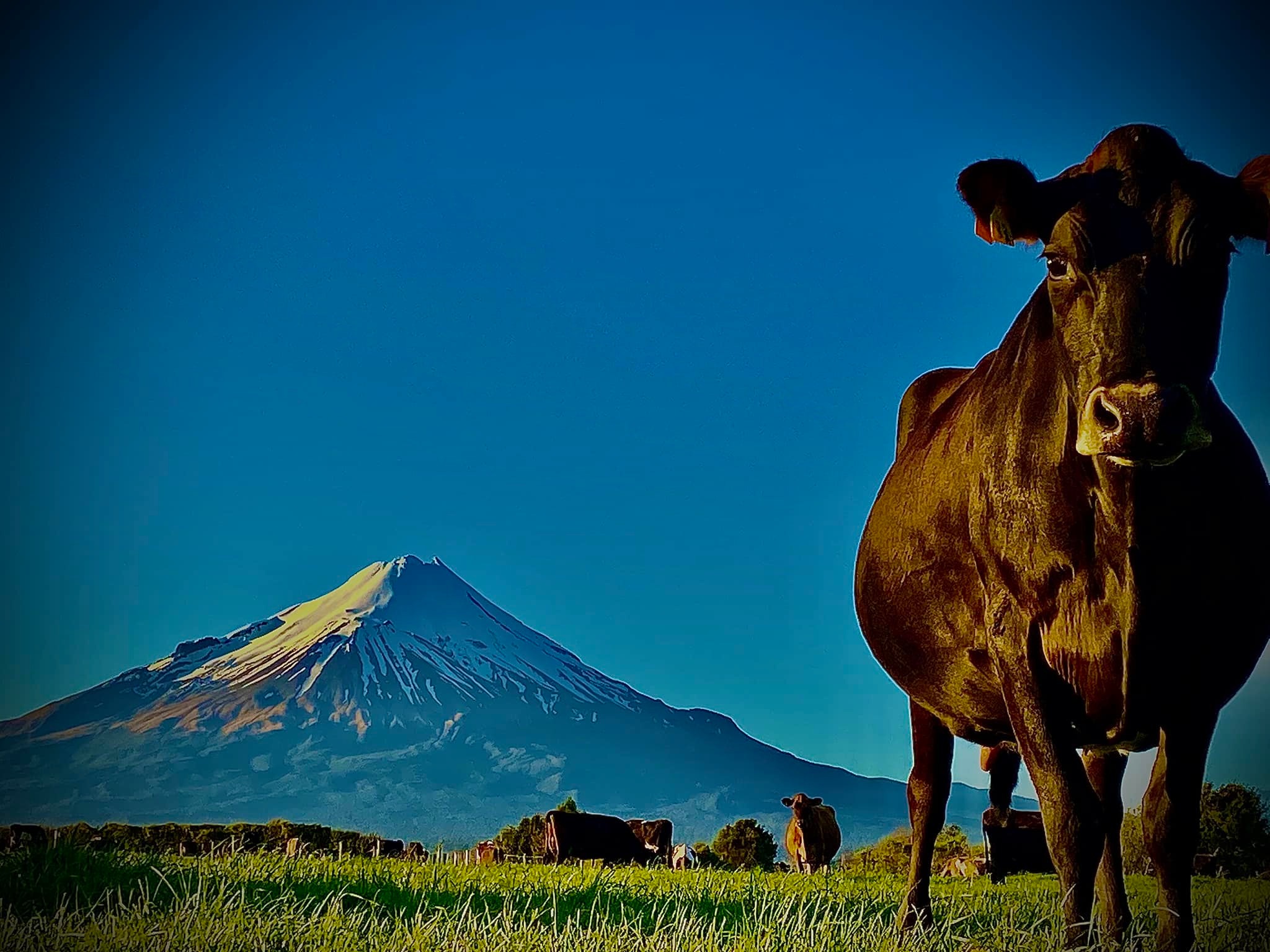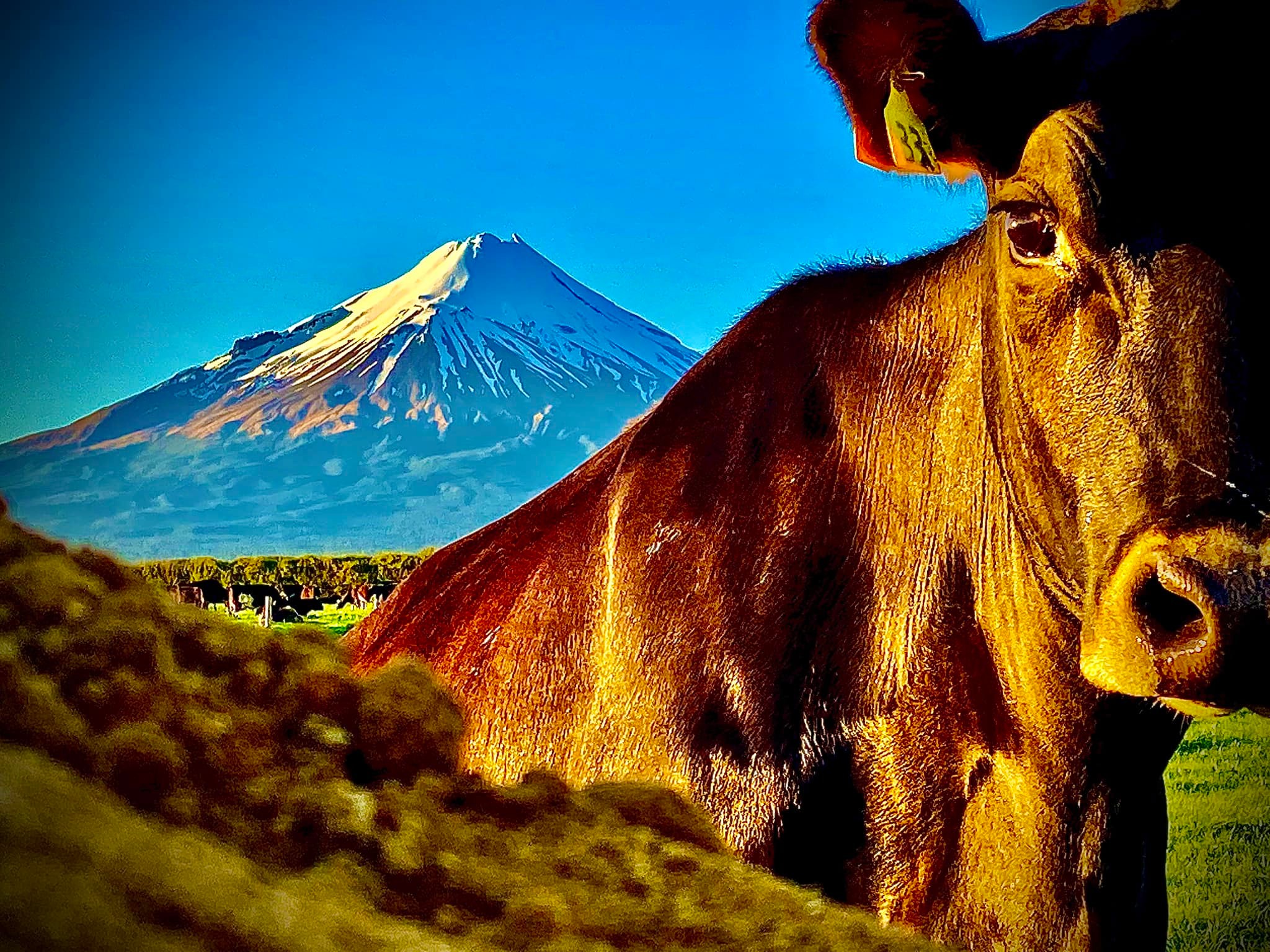 Op de foto zie je de vulkaan Mount Taranaki, deze konden we vanuit ons huis zien.